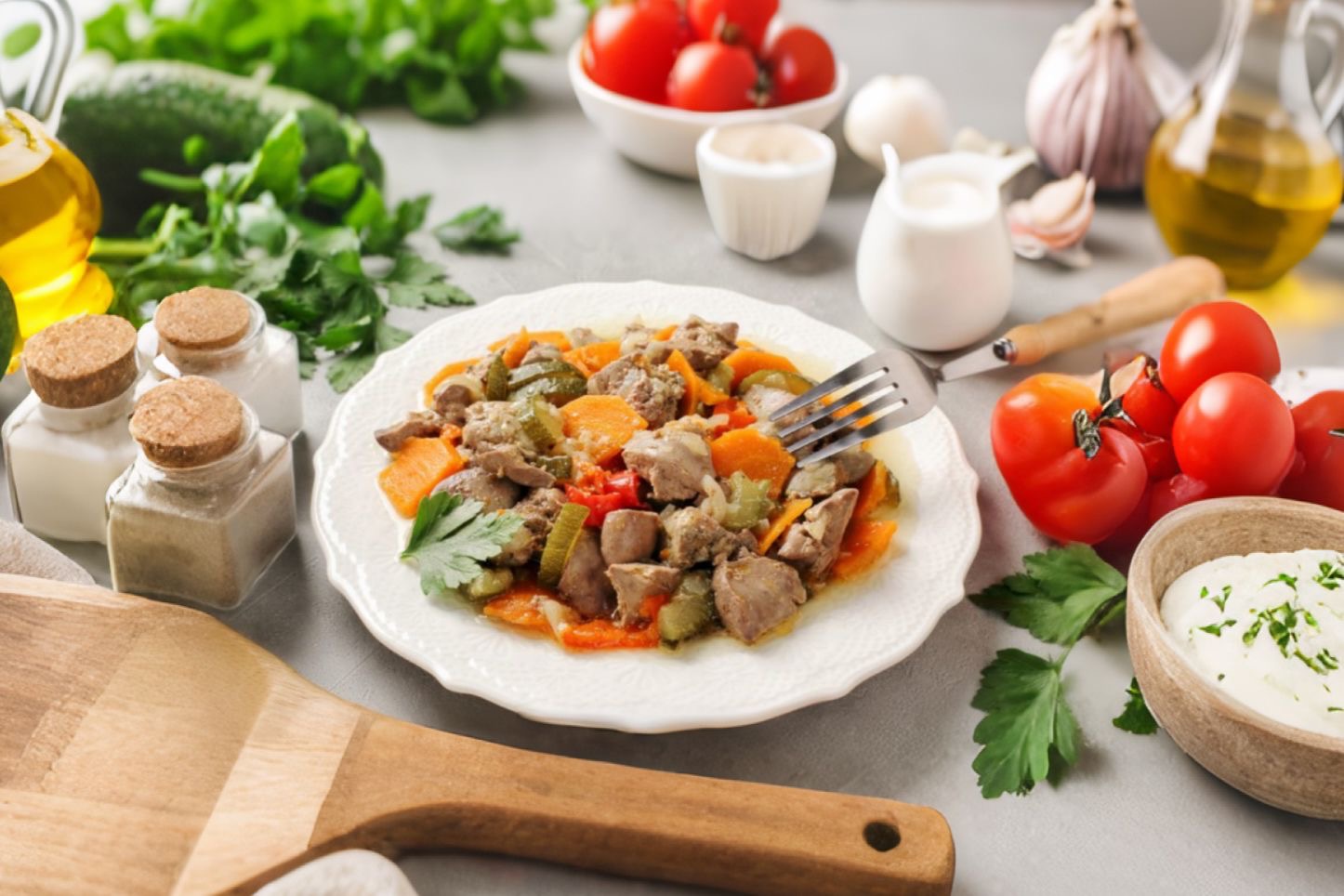 ГлавнаяКухня ГрядочкиГотовые домашние блюда Куриная печень с овощами
