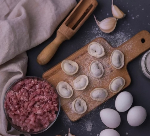Пельмени ручной лепки с начинкой из домашнего мяса