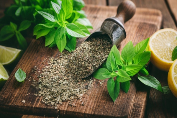 Благодаря своему богатому и разнообразному составу, а также наличию такого широкого спектра различных минеральных веществ, сушеный базилик активно применяют в диетическом питании. Во время диеты организм страдает от нехватки витаминов и других полезных веществ, которые эта сушеная зелень вполне в состоянии восполнить.