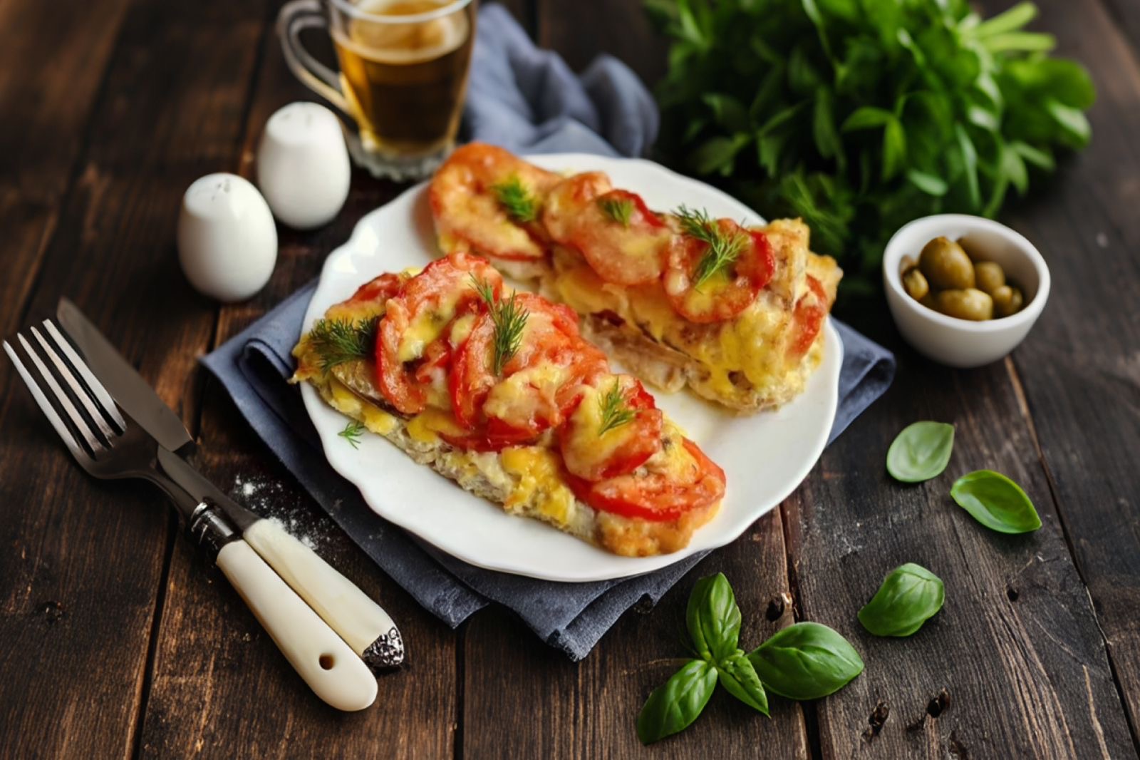 филе трески, помидоры, сыр твердый, сметана, чеснок, сухари панировочные